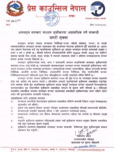 तोकिएको समयभित्र अद्यावधिक नभएका अनलाइन सञ्चारमाध्यमलाई सूचीकरणबाट अलग राखिने काउन्सिलले चेतावनी दिएको छ ।