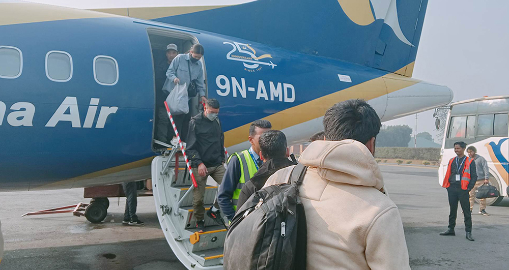 काठमाडौंबाट सुर्खेत उडेको बुद्ध एयरको जहाज पुनः काठमाडौंमै अवतरण