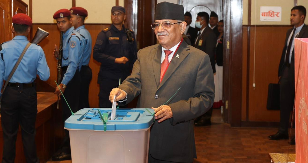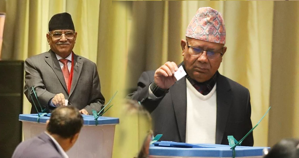 प्रधानमन्त्री प्रचण्ड र माधव नेपालद्वारा मतदान