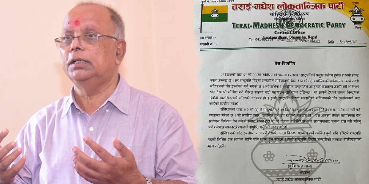 तमलोपाद्धारा राष्ट्रपति भण्डारीको राजीनामा माग