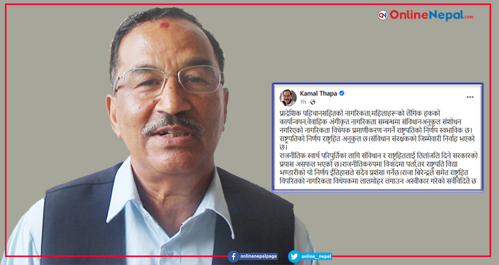 राष्ट्रहितलाई तिलांजलि दिने सरकारको प्रयास असफल, राष्ट्रपतिको निर्णय राष्ट्रहित अनुकुल छ : कमल थापा