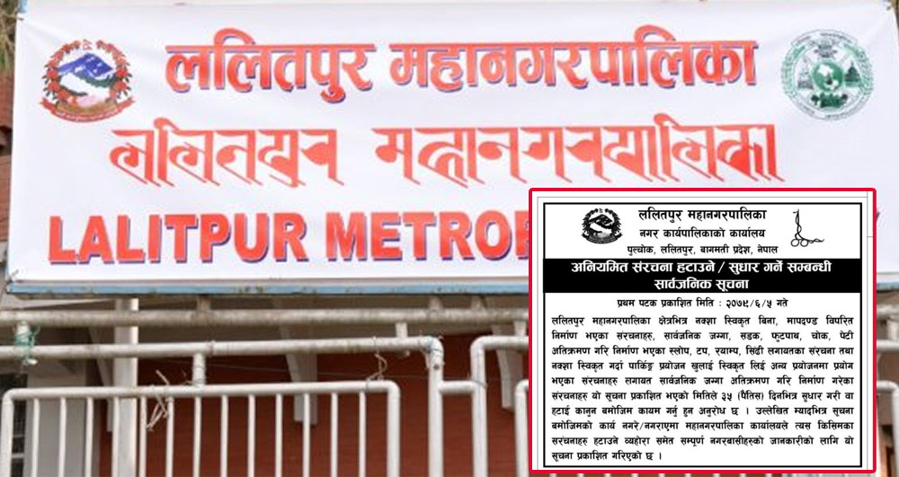 ललितपुर महानगरले भन्यो – अवैध संरचना ३५ दिन भित्र हटाउनू