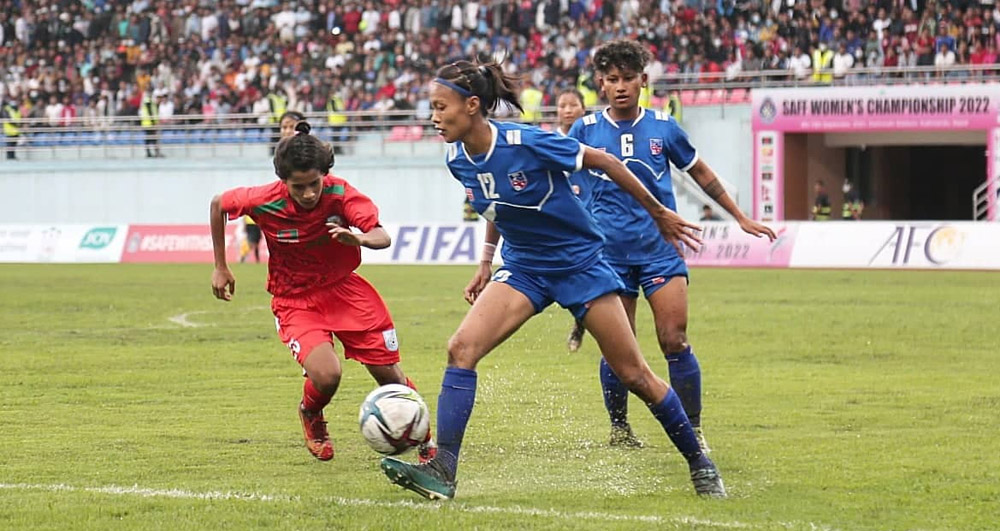 साफ महिला च्याम्पियनसिप : बंगलादेशविरुद्ध नेपालले १ गोल फर्कायो