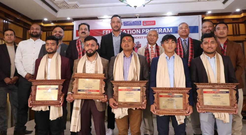 फिनेक्स कलेजद्वारा ज्ञानेन्द्रसहित पाँच क्रिकेट खेलाडी सम्मानित