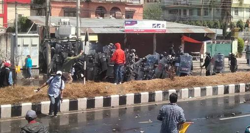 विराटनगरमा आन्दोलनकारी र प्रहरीबीच दोहोरो झडप, ५ राउण्ड अश्रुग्यास प्रहार