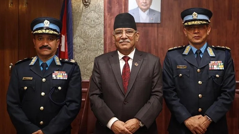 प्रधानमन्त्री प्रचण्डले दिए नवनियुक्त आईजीपी कुँवरलाई बधाई